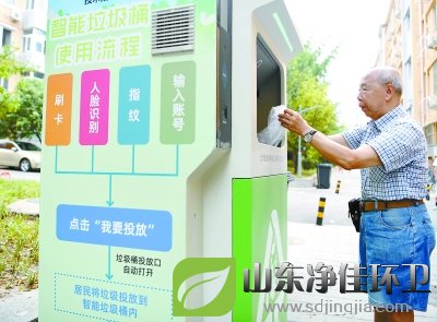 垃圾桶,可以進行人臉、指紋識別,還可以刷積分卡,方便居民更好地分類投放廚余垃圾,同時還能及時記錄每個用戶參與分類的頻次和數量。本報記者 和冠欣攝