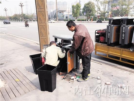 “換的這個已經是第二個了,今天一共要換六個?!?月6日上午,在經開區甜城大道上,專門負責更換垃圾箱的曹師傅和李師傅,正在路邊忙著拆卸一個被燒毀的垃圾箱。